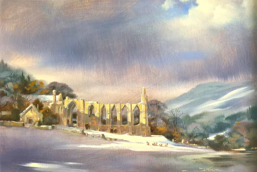 No Christmas show could be without L. Amy Charlesworth’s big snow scenes This year two feature Ribblehead Viaduct and a fresh brood of lovingly depicted robins will, or course, be strutting their stuff. Jane Fielder’s solo exhibition ran immediately before the Christmas one, so we’ll keep a selection of these, but we have also persuaded Jane to show a selection of my favourites, which feature the gas holders at Marley near Keighley. Sadly, the actual structures were demolished earlier this year, but these striking art pieces serve as a reminder of the local landmarks that once dominated the area. Meanwhile David Starley’s work will include the latest off the easel, including a big new view of the Three Peaks.